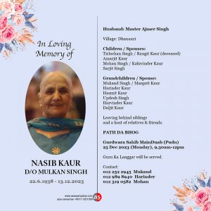 NASIB KAUR D/O MULKAN SINGH
