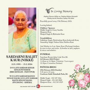 ASIA SAMACHAR is an online newspaper for Sikhs / Punjabis in Southeast Asia and beyond. You can leave your comments at our website, Facebook, Twitter, and Instagram. We will delete comments we deem offensive or potentially libelous. You can reach us via WhatsApp +6017-335-1399 or email: asia.samachar@gmail.com. For obituary announcements, click here