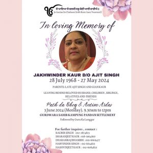 ASIA SAMACHAR is an online newspaper for Sikhs / Punjabis in Southeast Asia and beyond. You can leave your comments at our website, Facebook, Twitter, and Instagram. We will delete comments we deem offensive or potentially libelous. You can reach us via WhatsApp +6017-335-1399 or email: asia.samachar@gmail.com. For obituary announcements, click here