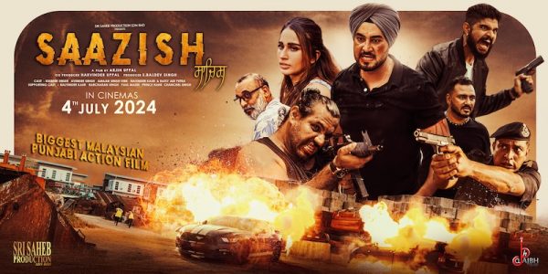 Saazish means conspiracy. And this movie, deploying both the Punjabi and Malay languages, has a mixture of love, family feud, crime and business.
