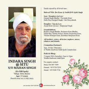 Indara Singh @ Situ (1947 – 2024) Ex DBI Ipoh
