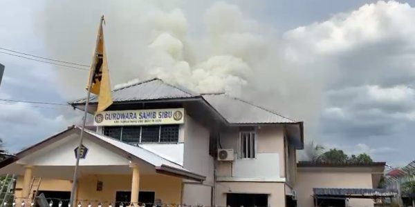 The Sibu gurdwara builiding was partially damaged, especially its roof, in a fire yesterday (Dec 14).