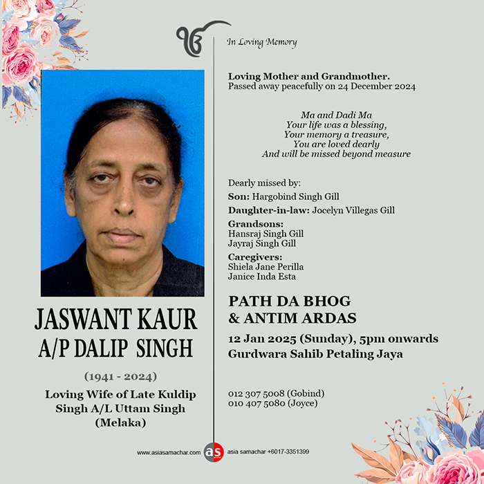 ASIA SAMACHAR is an online newspaper for Sikhs / Punjabis in Southeast Asia and beyond. You can leave your comments at our website, Facebook, Twitter, and Instagram. We will delete comments we deem offensive or potentially libelous. You can reach us via WhatsApp +6017-335-1399 or email: asia.samachar@gmail.com. For obituary announcements, click here