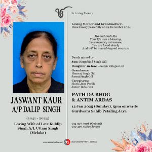 Loving Wife of Late Kuldip Singh A/L Uttam Singh (Melaka)