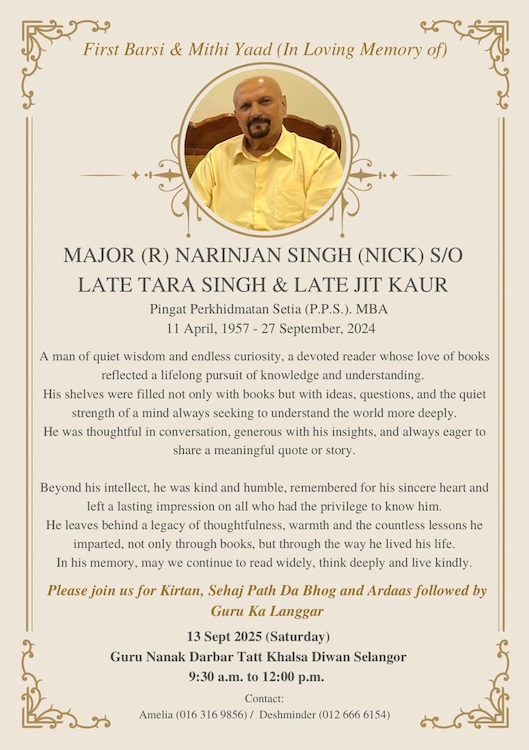 ASIA SAMACHAR is an online newspaper for Sikhs / Punjabis in Southeast Asia and beyond. You can leave your comments at our website, Facebook, Twitter, and Instagram. We will delete comments we deem offensive or potentially libelous. You can reach us via WhatsApp +6017-335-1399 or email: asia.samachar@gmail.com. For obituary announcements, click here