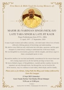 MAJOR (R) NARINJAN SINGH (NICK) S/O LATE TARA SINGH & LATE JIT KAUR