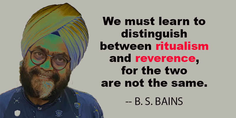 We must also learn to distinguish between ritualism and reverence, for the two are not the same. Ritualism is often mechanical — an act performed out of habit, fear, or social expectation — whereas reverence is born from genuine love, awareness, and connection with the Divine. Not all rituals express reverence, and not all reverence requires ritual. When an act is filled with humility, mindfulness, and devotion, even the simplest gesture becomes sacred. But when the same act is done without understanding, it loses its spirit and becomes mere performance. Guru Nanak’s teaching reminds us to preserve the essence of reverence while freeing ourselves from the bondage of empty ritual.