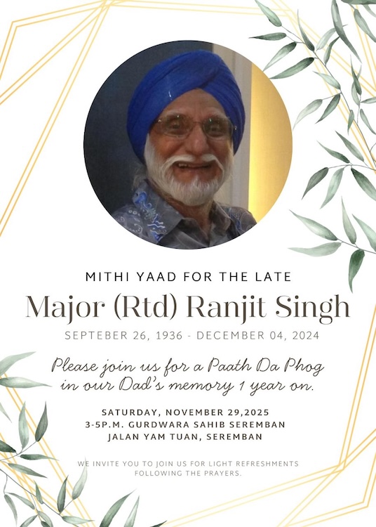 ASIA SAMACHAR is an online newspaper for Sikhs / Punjabis in Southeast Asia and beyond. You can leave your comments at our website, FacebookTwitter, and Instagram. We will delete comments we deem offensive or potentially libelous. You can reach us via WhatsApp +6017-335-1399 or email: asia.samachar@gmail.com. For obituary announcements, click here