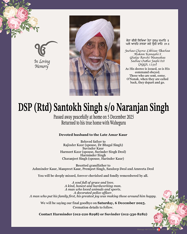 ASIA SAMACHAR is an online newspaper for Sikhs / Punjabis in Southeast Asia and beyond. You can leave your comments at our website, Facebook, Twitter, and Instagram. We will delete comments we deem offensive or potentially libelous. You can reach us via WhatsApp +6017-335-1399 or email: asia.samachar@gmail.com. For obituary announcements, click here