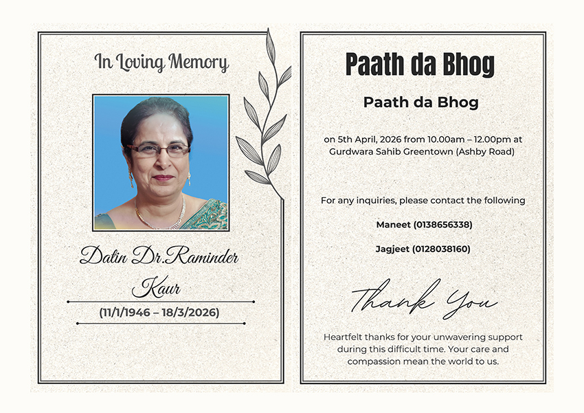 ASIA SAMACHAR is an online newspaper for Sikhs / Punjabis in Southeast Asia and beyond. You can leave your comments at our website, Facebook, Twitter, and Instagram. We will delete comments we deem offensive or potentially libelous. You can reach us via WhatsApp +6017-335-1399 or email: asia.samachar@gmail.com. For obituary announcements, click here