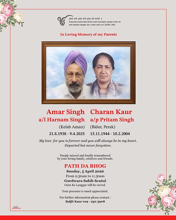 ASIA SAMACHAR is an online newspaper for Sikhs / Punjabis in Southeast Asia and beyond. You can leave your comments at our website, FacebookTwitter, and Instagram. We will delete comments we deem offensive or potentially libelous. You can reach us via WhatsApp +6017-335-1399 or email: asia.samachar@gmail.com. For obituary announcements, click here
