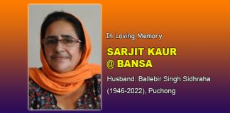 In Ever Loving Memory: Amar Kaur Pertap Singh (Mrs Sohan Singh)