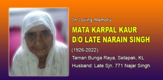 Mata Kavan Kaur Sadhu Singh (1947 – 2022), Kuantan, Pahang