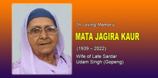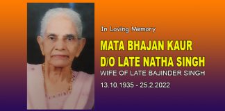 Mata Bhajan Kaur d/o Late Natha Singh (1935 – 2022)