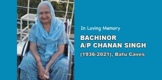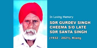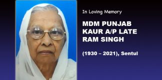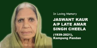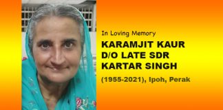 SASKAAR / CREMATION: 2.00pm, 13 June 2021 (Sunday) at Sikh Crematorium Jalan Wadda Gurdwara, Ipoh. Hearse leaves No 53, Laluan Sungai Pari 13, Teluk Kurin Kampung...