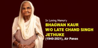 PATH DA BHOG: Passed away peacefully on 11 June 2021. Antim Ardaas and Path Da Bhog to be held privately on 20 June 2021...