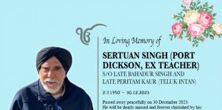 SERTUAN SINGH (PORT DICKSON, EX TEACHER)S/O LATE BAHADUR SINGH AND LATE PERITAM...