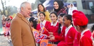 King Charles spoke with local schoolchildren outside the Guru Nanak Gurdwara