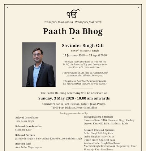 Retired senior civil servant Bhagwan Singh s/o Late Bishen Singh passed away on 5...