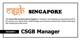 The Central Sikh Gurdwara Board, Singapore is looking for well qualified and experienced staff to fill a...