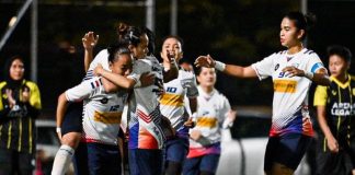 Steffi Sarge Kaur (right) and her team in the Football Association of Selangor (FAS) Women’s Super League opening...