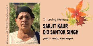 In Loving Memory: Sarjit Kaur d/o Santok Singh (1943 – 2022)